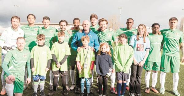 Scott Davies and his Slough Town teammates wore a Thames Hospice branded green strip for their fundraising matchday against Bath City in March