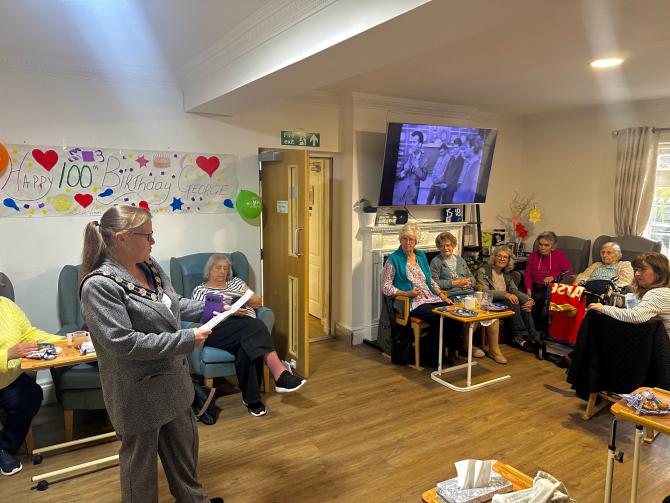 Residents, staff, family members, friends and the mayor of Slough Siobhan Dauti gathered at Applegarth Care Home to mark George Baxter’s birthday.