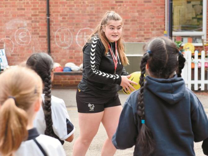 Maud Muir delivering a coaching session at Highfield Preparatory School, Maidenhead