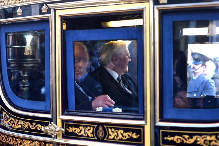 King Charles and President Steinmeier travelled in the Irish Stage Coach, while Queen Camilla accompanied Ms Büdenbender in the Scottish Stage Coach.