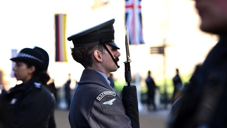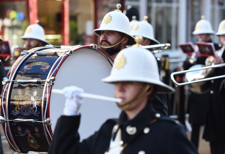 The regimental band performed both national anthems before the President, escorted by The King, inspected the Guard of Honour and observed a military march-past.