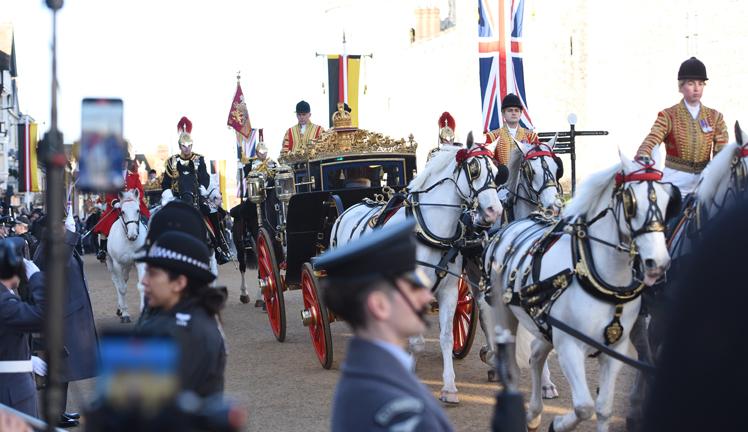 A ceremonial carriage procession brought the visiting party to Windsor Castle, where a Guard of Honour delivered another Royal Salute.