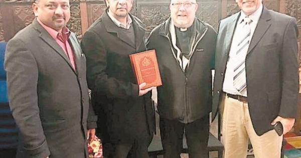 Reverend Bill Jackson from St. Peter’s Church in Church Street was presented with a copy of the Quran by members of the Ahmadiyya Muslim Community (AMC) Slough and South Bucks at a special meeting on Friday, March 16.