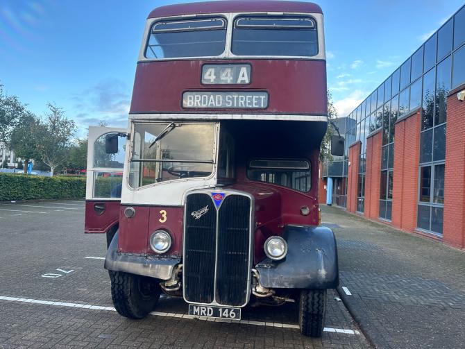 The two locations for the event were linked by a vintage AEC Regent Bus which has been preserved in Reading Corporation Livery and was hired for the event.