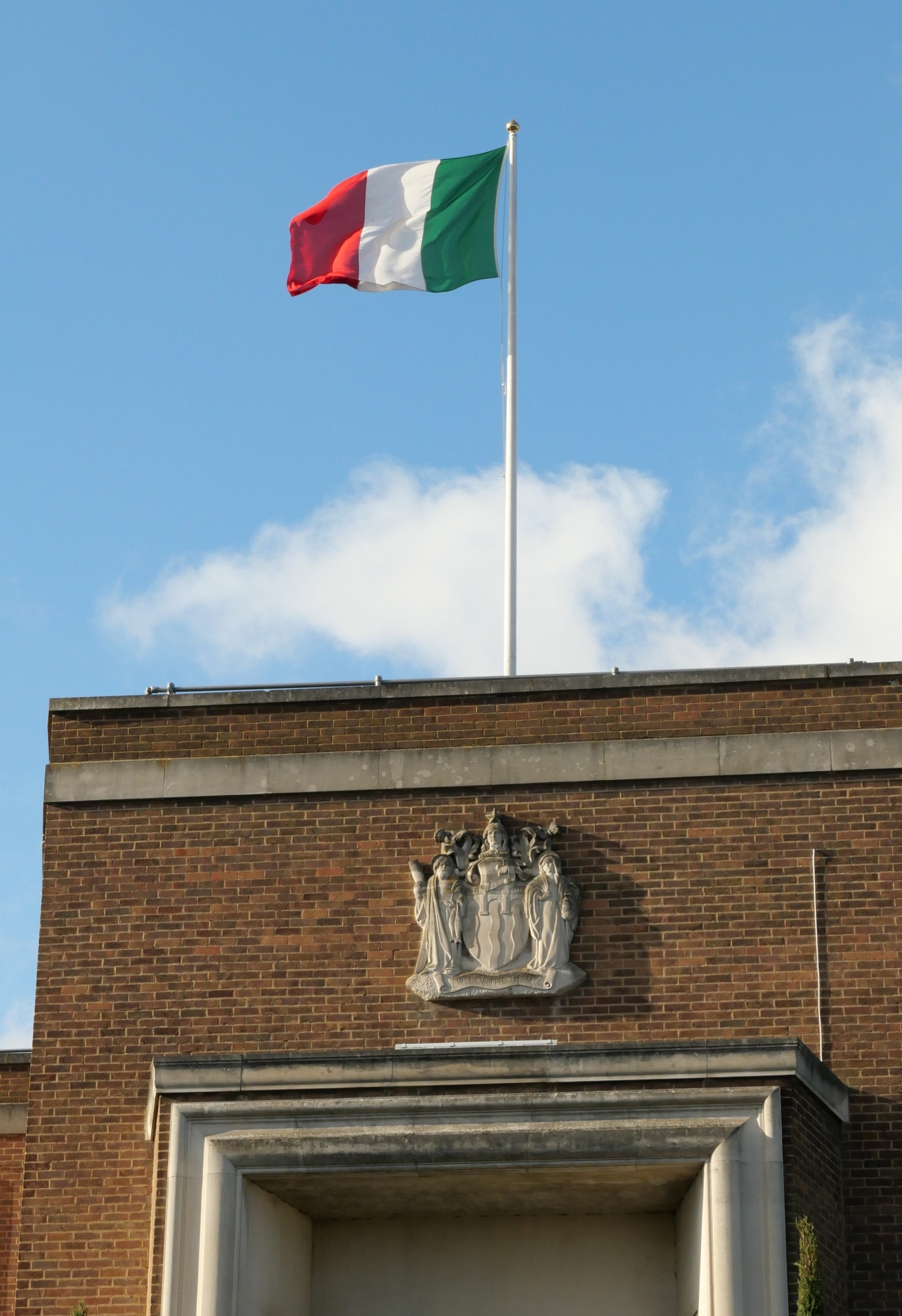 An Italian flag fluttered in the wind above the hall and a blue sign appeared reading ‘Scuola Primaria San Vincenzo: dove nasce la curiosita e cresce il talento’.