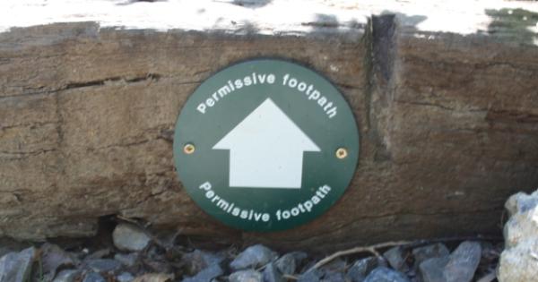 This was later removed and replaced by a white footpath arrow on one of the steps labelling the footpath as “permissive”.