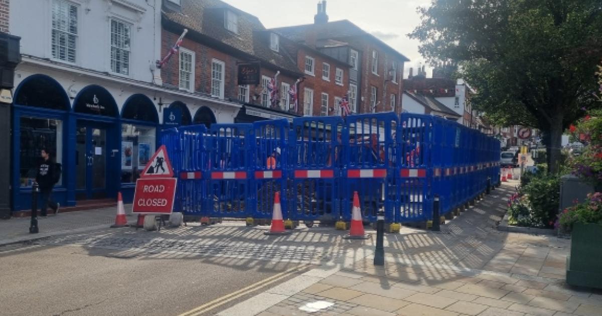 Thames Water has closed Market Place, which runs to the left of Falaise Square from the top of Hart Street up to the town hall.