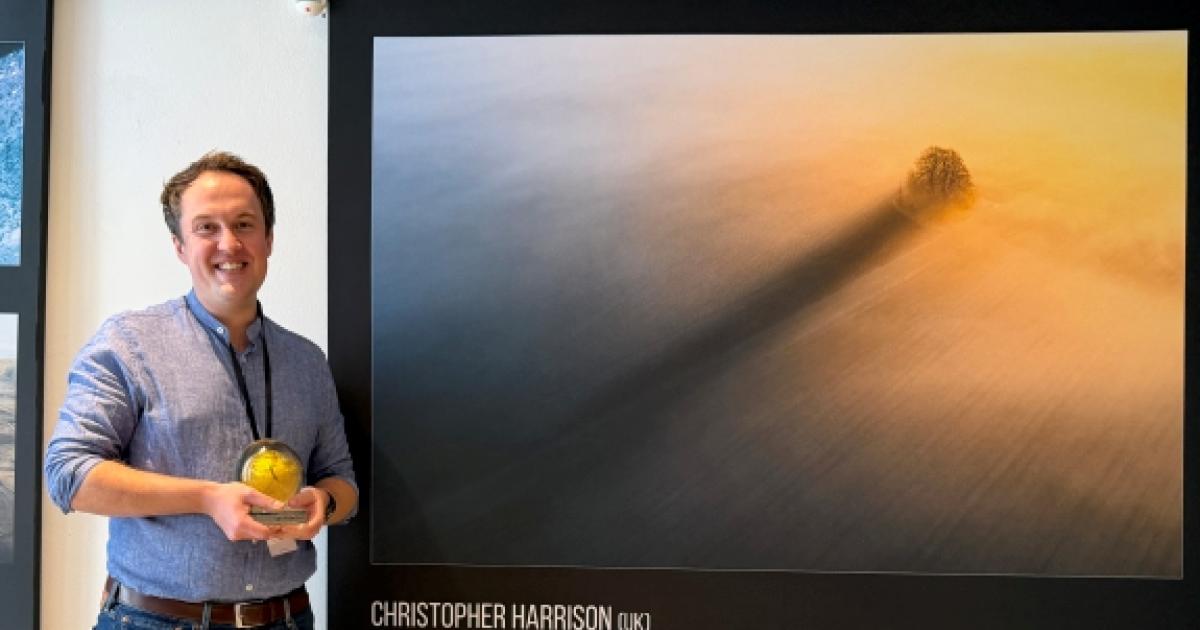 Chris Harrison, 34, was honoured for his misty morning drone shot at the Siena Awards on September 27.