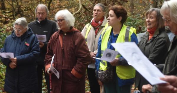 About 50 people, who wore thick layers and walking boots, gathered in the woods with their dogs on leads in front of the former practice trenches.