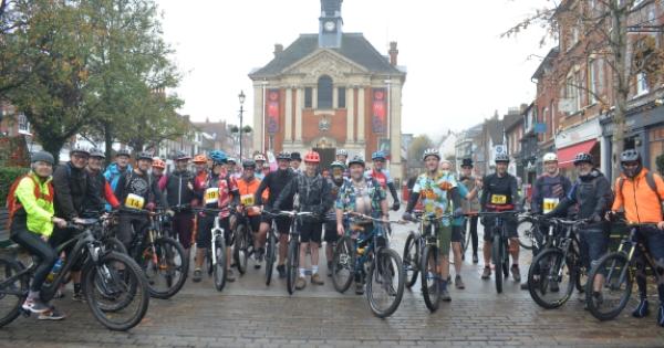 THIRTY-FIVE mountain bikers joined the Mayor on an off-road trail around Henley to raise money for charity.