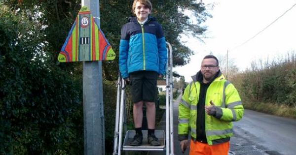 A BOY from Woodcote designed and installed a sign to deter speeding drivers.