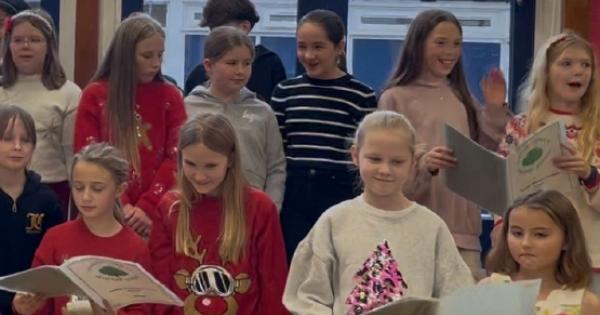 The school choir and glee club performed, practising several songs for their upcoming Young Voices concert in Birmingham Arena in January. Other children performed with recorders and handbells.