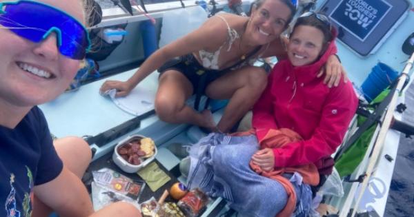 Along with her teammates, Clare O’Reilly, who marked her 47th birthday at sea, and Mel Jarman, 33, Miss Tong has been rowing in endless shifts, only stopping altogether on the rare occasion the wind allows.