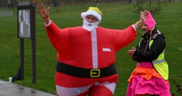 The damp, cloudy morning didn’t deter the festive runners, some of whom took part in fancy dress, including Santa Claus, snowmen and elves.