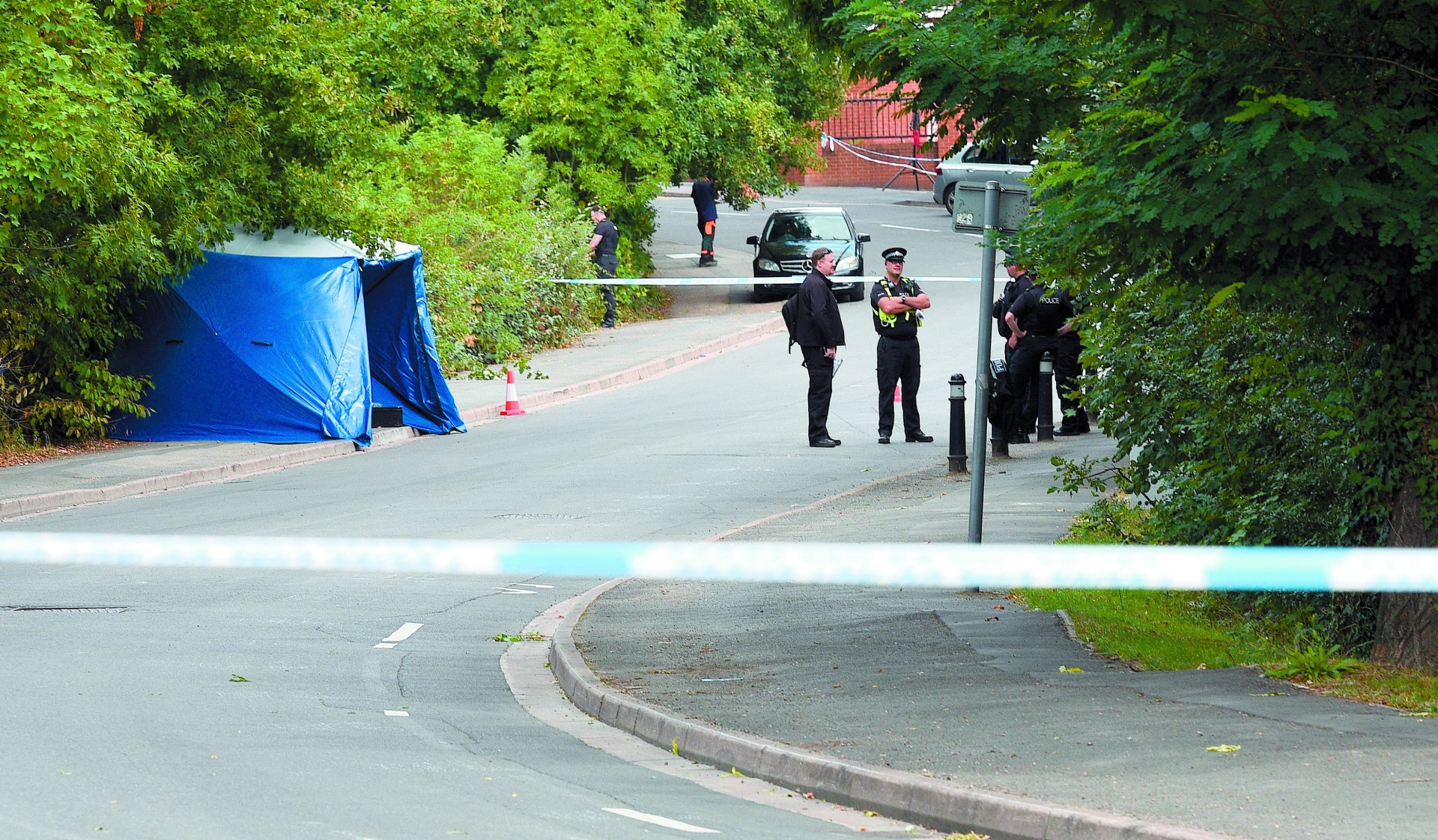 Officers at the scene in Keel Drive today. Ref:134829-9