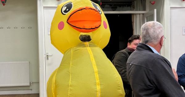 A MEETING of Sonning Common Parish Council was briefly interrupted when a man entered the village hall in an inflatable duck costume.
