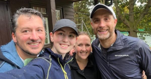 Julian Milne and Lizzie Miles faced a tougher challenge against Sonning’s strong second pair — a contest full of deuces, tight rallies, wet leaves and relentless drizzle — eventually falling 5-7, 4-6.