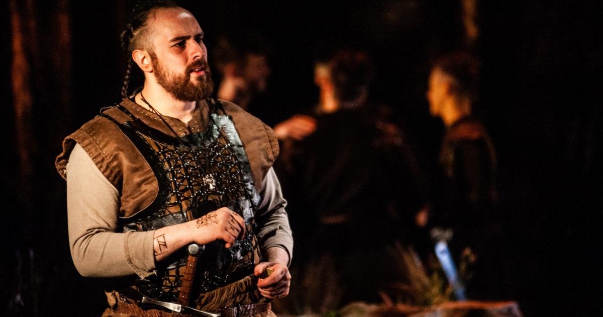Performed by an extremely strong cast of excellently depicted characters on a relatively simple, but well-conceived and well-lit set made up of moveable standing stones and rocky outcrops, director Joe Malyan and his team created an atmospheric and, at times, visually cinematic piece of theatre with a subtle and deferential nod to ‘Games of Thrones’. This was further enhanced by the use of an original haunting soundtrack and a beautifully melodic chorus.